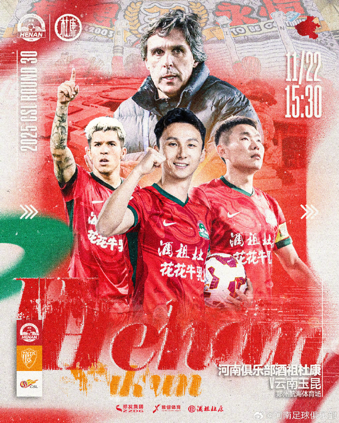 11月22日讯 11月22日15:30,中超第30轮河南vs云南玉昆。赛前两边首发公布。