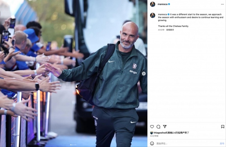 马雷斯卡社媒写说念:“这是一个与以往不同的赛季开局,咱们带着关爱和渴慕来理睬新赛季,继续学习与成长。感谢切尔西民众庭的复古。”
