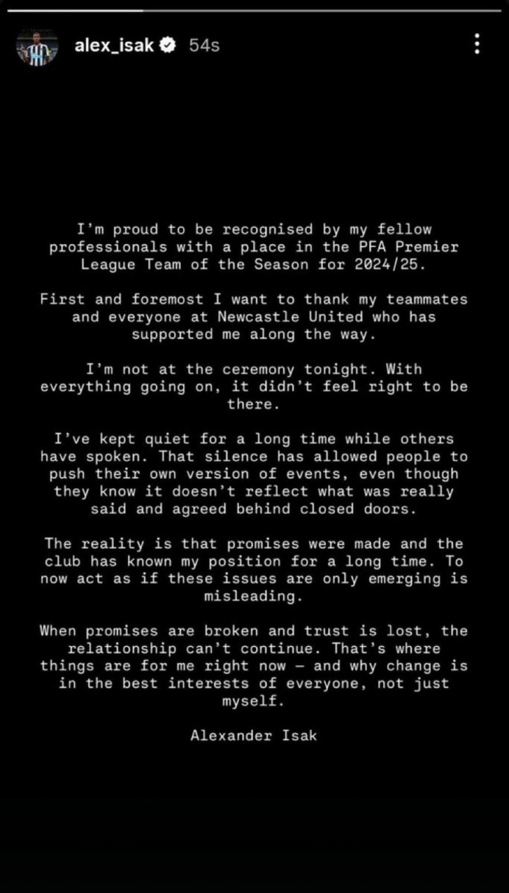 08月20日讯 伊萨克社媒发表声明,表示为何莫得出席PFA授奖庆典,而况谈及我方的转会外传。