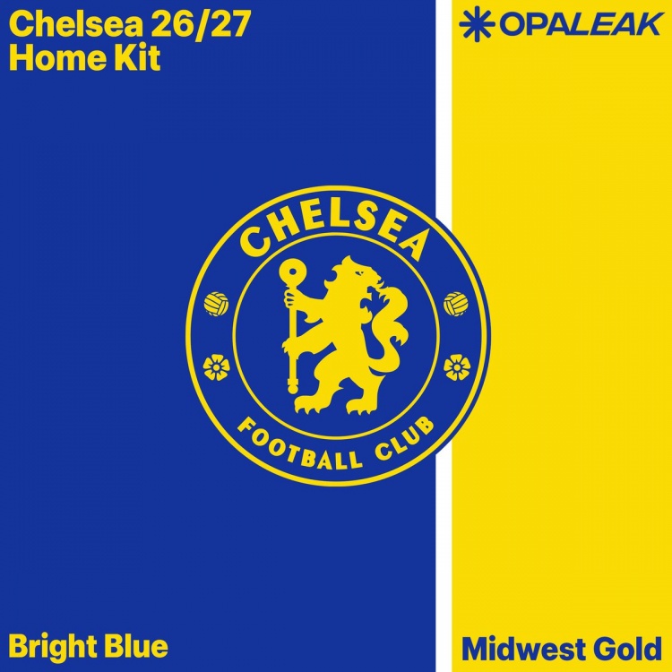 Opaleak社媒晒出图片,深远2026-2027赛季切尔西主场球衣的主色彩为传统蓝色,搭配黄色。