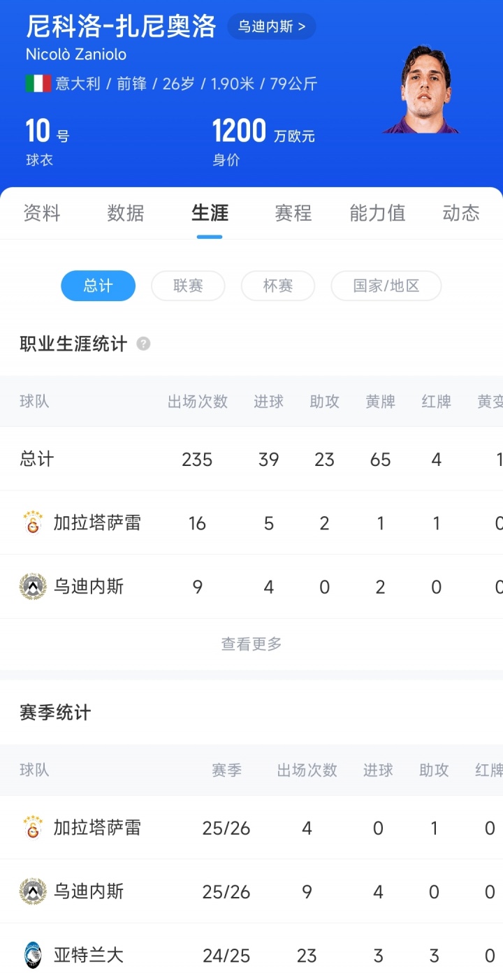 本年夏窗扎尼奥洛从加拉塔萨雷租出加盟乌迪内斯,赛季于今代表球队出战9场比赛,打进4球,仍是刷新了个东谈主近3个赛季最多的单赛季进球数。