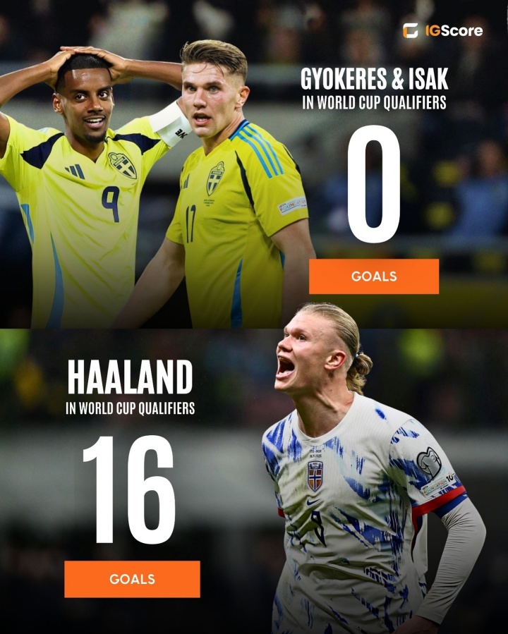 11月18日讯 欧洲区世初赛依然接近尾声,哈兰德指引的挪威8战全胜挺进寰球杯,他本东谈主更是8场16球领跑弓手榜,与另一支领有豪华锋线的球队瑞典变成了显着反差。