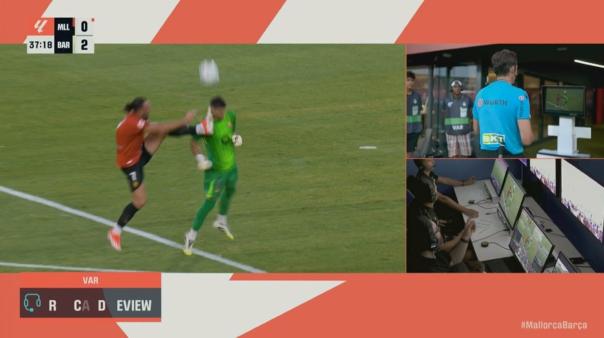 08月17日讯 西甲首轮巴萨3-0客胜马洛卡,门将霍安-加西亚上半场被争球时被马洛卡球员穆里奇踢到面颊,酿成敌手红牌。