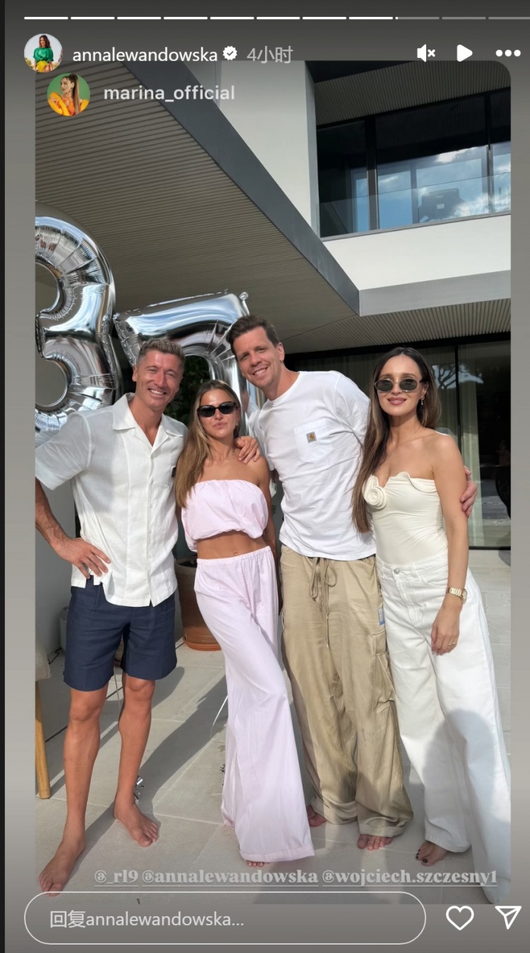 巴萨时尚莱万迎来了37岁诞辰,内助安娜在酬酢媒体上晒降诞辰约聚相片和视频,祝莱万诞辰顺耳,什琴斯尼也进入了约聚。