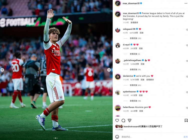 本场比赛15岁235天的说念曼替补登场,成为队史第二年青首秀球员。说念曼在个东说念主社媒晒出本场相片,配文写说念:“在酋长球场的球迷眼前完成个东说念主英超首秀,这对我和我的家东说念主齐是一种骄慢。这还只是是个运行!”