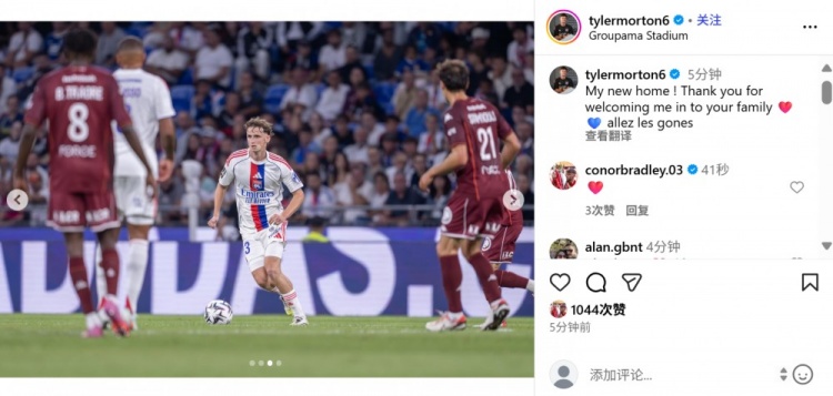 当选全场最好,里昂新援莫顿社媒:我的新主场,感谢环球的接待