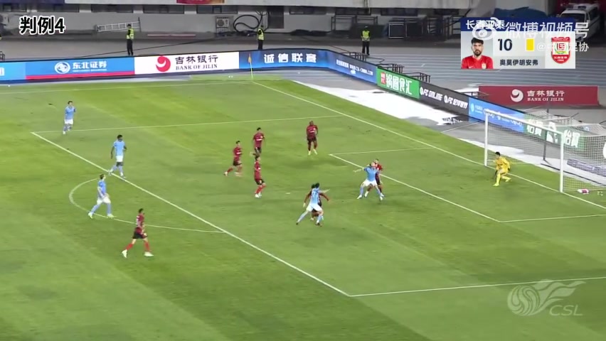 判例二:中超联赛第22轮,长春亚泰VS深圳新鹏城。比赛第50分钟,长春亚泰队进球,评判员判进球有用。VAR未介入。