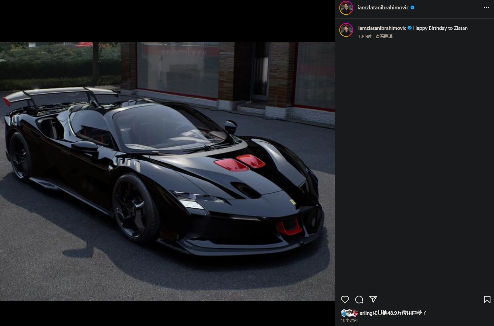 依旧法拉利!伊布社媒再晒爱车为我方庆生:祝兹拉坦生辰安祥