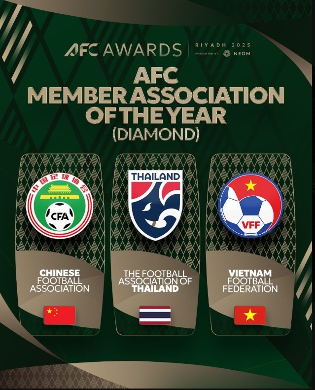 亚足联钻石协会提名名单:中国足协、泰国足协、越南足协