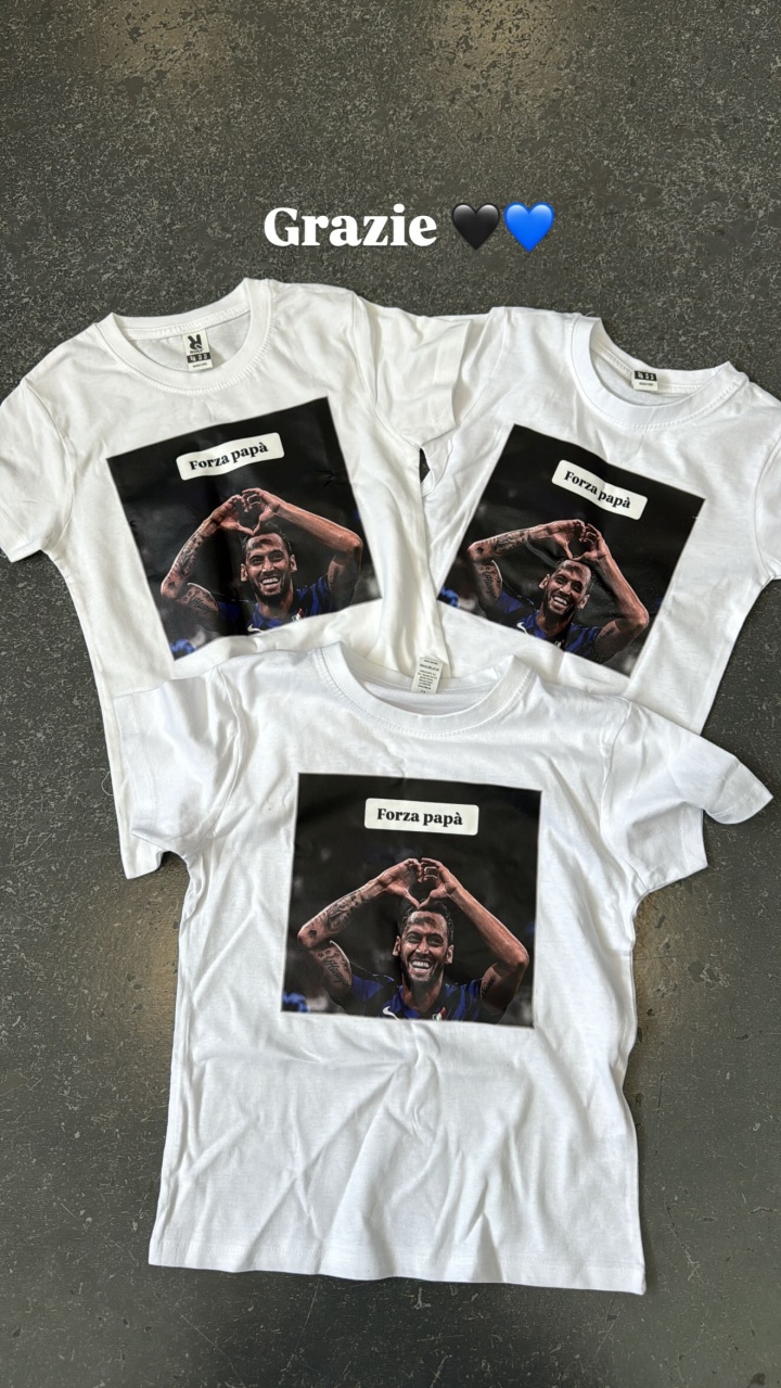 恰尔汗奥卢的第三个孩子于2023年降生,相片上的三件小码T恤对应着恰尔汗奥卢的三个孩子,同期T恤上宅心大利语写着“爸爸加油”,配图是恰尔汗奥卢身穿国米球衣时手比爱心。
