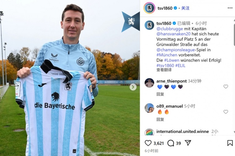 与此相呼应的是,布鲁日队今天上昼遴荐的赛前动员磨真金不怕火时局,恰正是拜仁同城死敌慕尼黑1860的磨真金不怕火基地——这位德甲第三级别联赛的球队以致向他们的比利时宾客拯救了一件球衣,并在Instagram上道贺他们在对阵拜仁的比赛中好运。