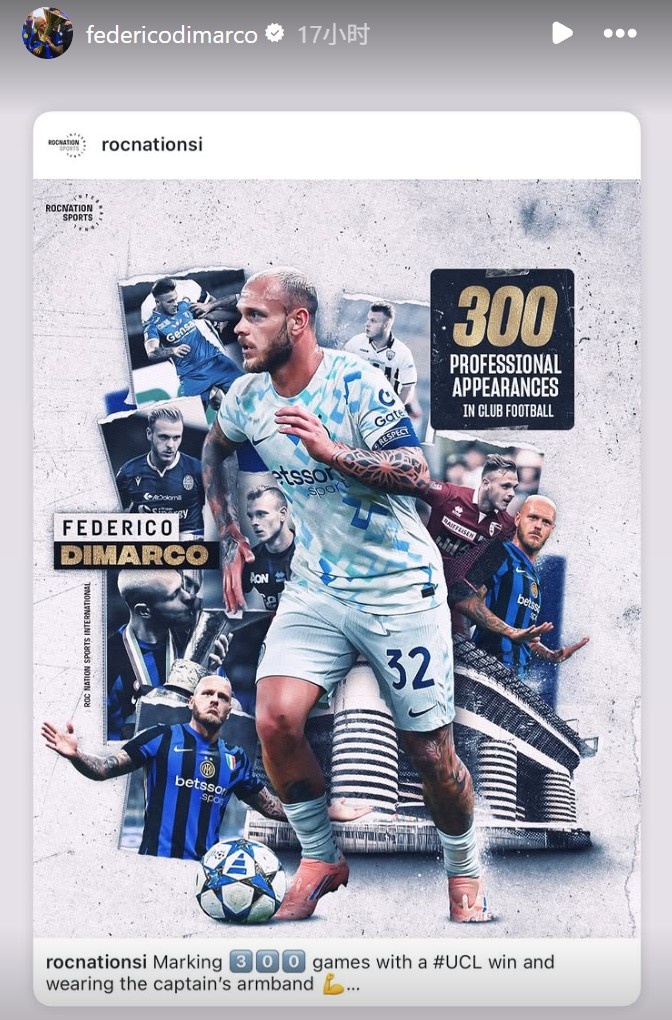 他也在本日通过社媒转发了经纪公司为其制作的缅想海报,后者还配文:“以一场欧冠到手和队长袖标完成300场里程碑。”主帅都沃也为其奉上祝愿:“夙昔还会有更多!”
