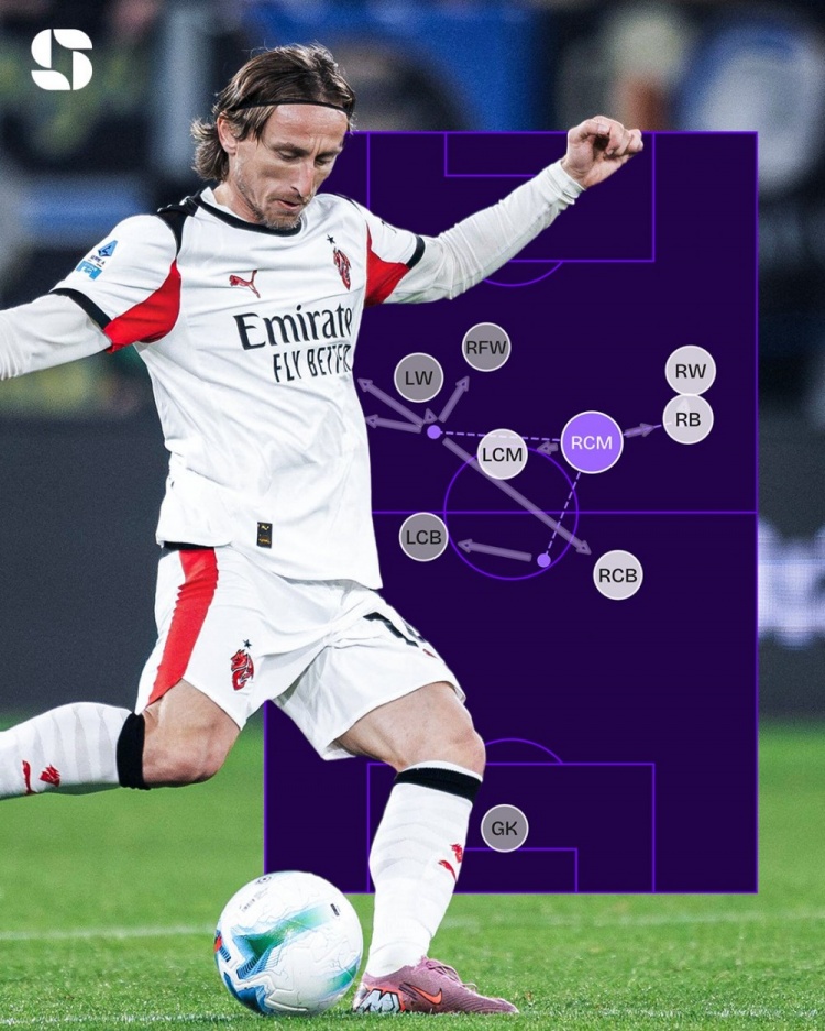 宝刀不老!40岁莫德里奇748次触球+559次告捷传球为意甲同时最多
