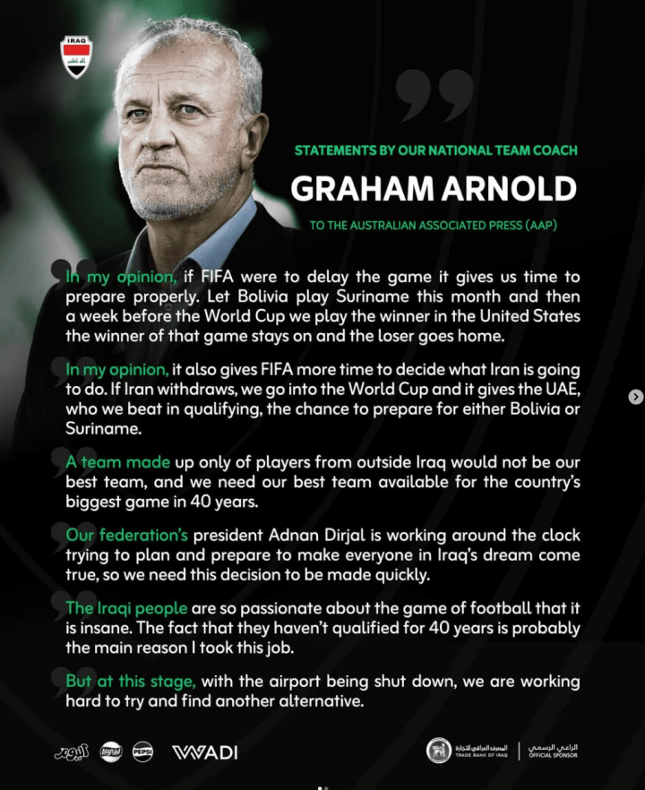 伊拉克足协在Instagram上发表声明称: