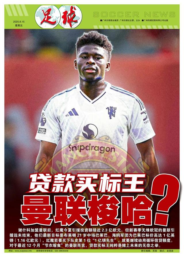 撰稿/寒冰 谢什科加盟曼联后,红魔今夏引援投资额接近2.3亿欧元。但新赛季无缘欧冠的曼联引援远未杀青,他们最新运筹帷幄是布莱顿21岁中场巴莱巴。海鸥军团为巴莱巴标价高达1亿英镑(1.16亿欧元),红魔若要买下队史第1位“1亿镑先生”,就要继续动用轮覆信贷额度。关于最近12个月“布衣疏食”的曼联而言,贷款买标王活泼是赌上畴昔的无奈之举。