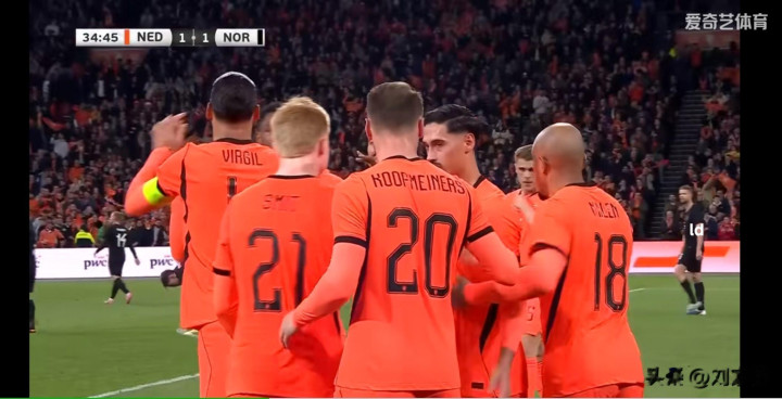 第35分钟,荷兰快速 还以颜色,库普梅纳斯开出精准底线球,危险区域 内范戴克高高跃起顶球入网,将场上比分扳为1-1平。第51分钟,荷兰再入一球,邓弗里斯危险区域 内冷静横传,赖因德斯及时跟进劲射奠定胜局。