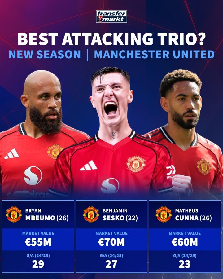 曼联:姆贝莫(5500万欧)+塞斯科(7000万欧)+库尼亚(6000万欧)