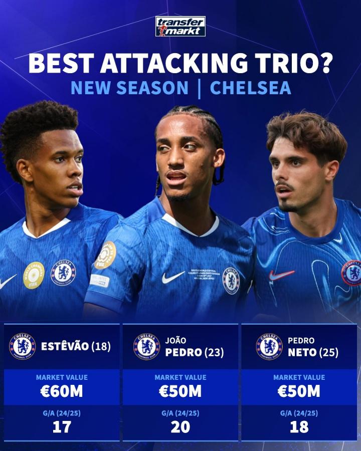 切尔西:埃斯特旺(6000万欧)+佩德罗(5000万欧)+内托(5000万欧)