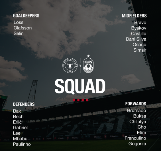 雷速体育8月21日讯 欧联首回合,中日德兰vs古比斯。赛前,中日德兰首发出炉: