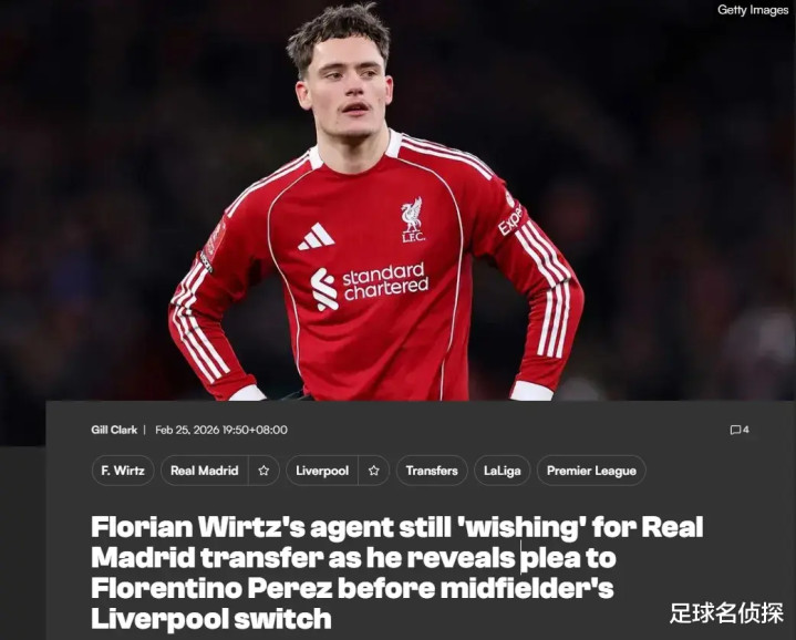 维尔茨的经纪人斯特鲁特近日接受图片报采访时表示,这名球星在加盟利物浦之前,他曾联系阿隆索请求将自己的客户带到皇马,而且他依然希望维尔茨未来为皇马效力。