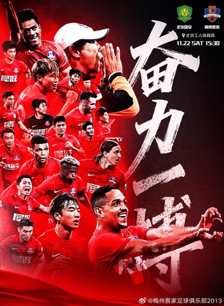 中超联赛第30轮:北京国安vs梅州客家 11月22日打响