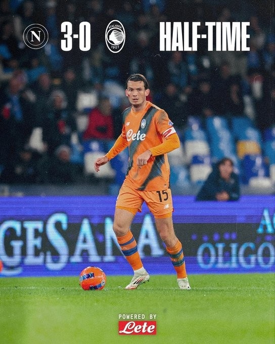 11月23日讯 本轮意甲焦点战,那不勒斯主场上半场3-0卓绝亚特兰大。