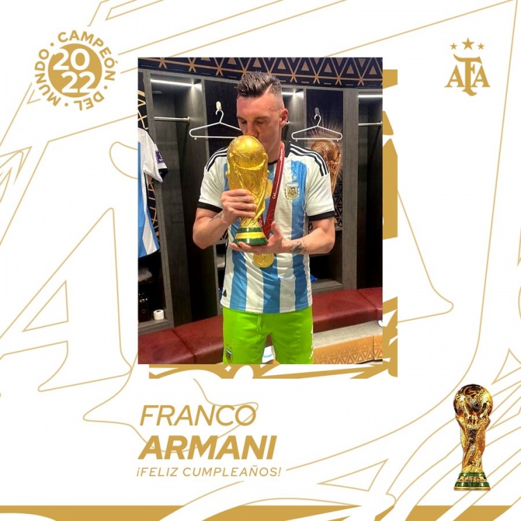 阿根廷晒海报祈福阿尔玛尼39岁诞辰,糊口27冠位列阿根廷门将之首