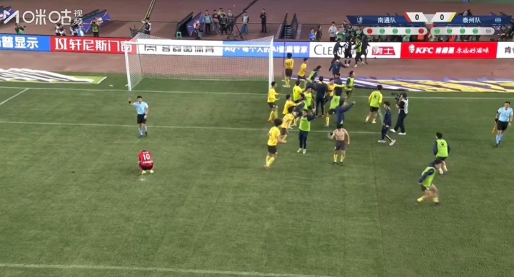 南通队长第五罚被泰州门将扑出!泪洒赛场,死后泰州全队豪恣庆祝