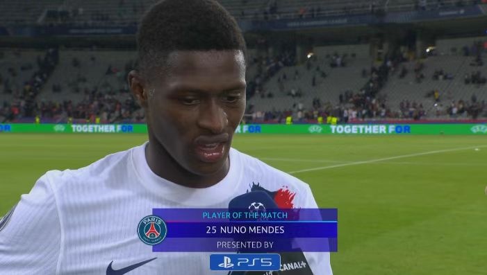 此役努诺-门德斯踢满全场送出助攻,匡助巴黎取胜,他当选本场比赛最好球员。