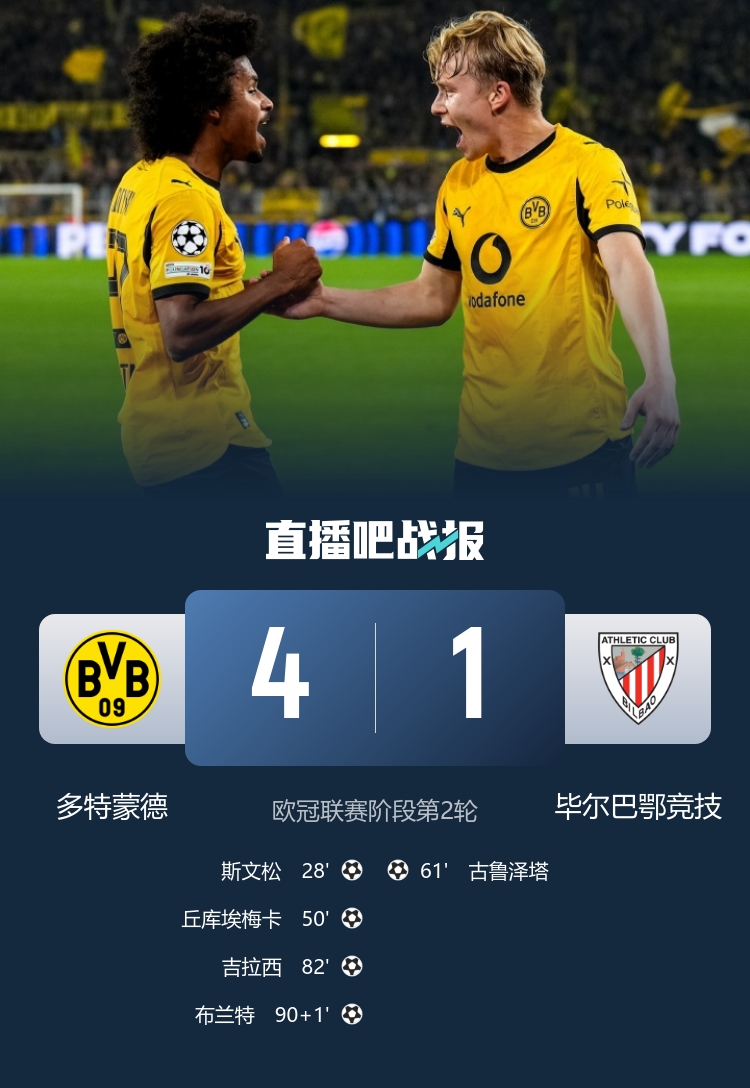 今天巴萨1-2遭巴黎逆转,比利亚雷亚尔2-2绝平尤文,毕尔巴鄂1-4不敌多特。