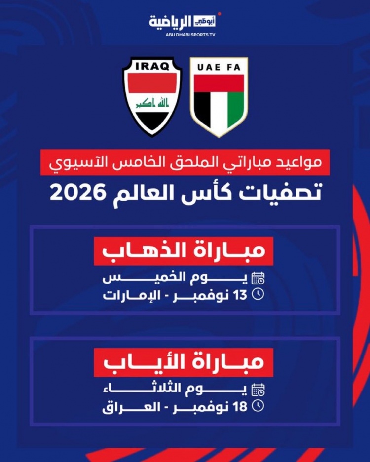 世初赛亚洲区第五阶段,将由阿联酋与伊拉克进行主客两回合较量,胜者将得回洲际附加赛经验。
