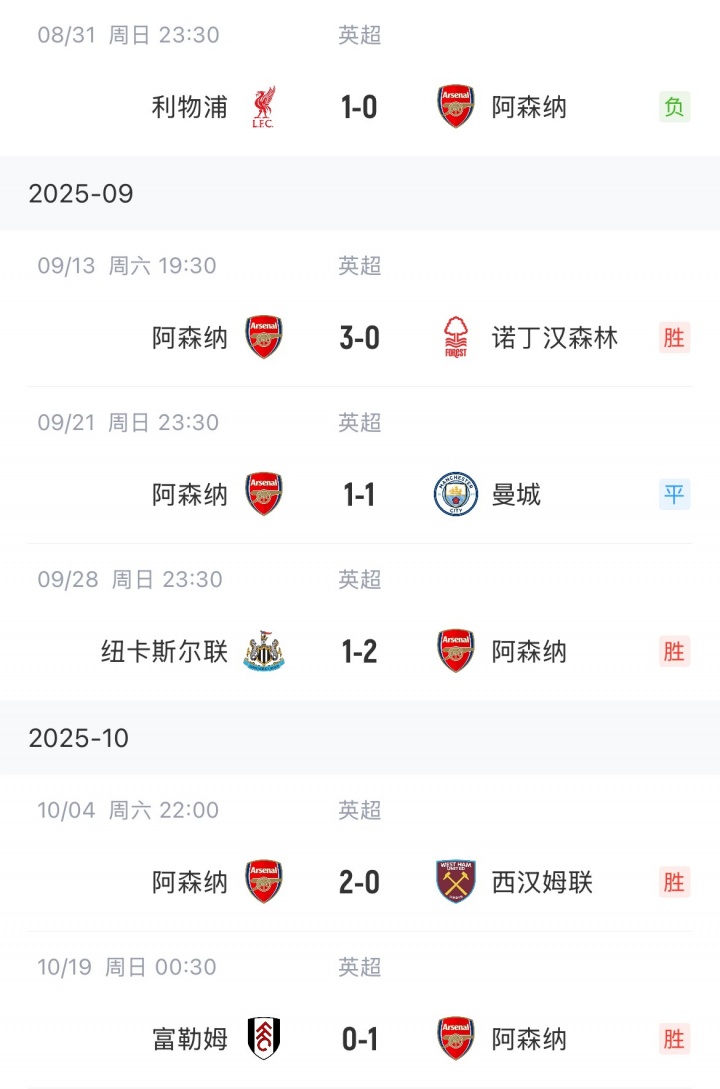 阿森纳联赛战绩: