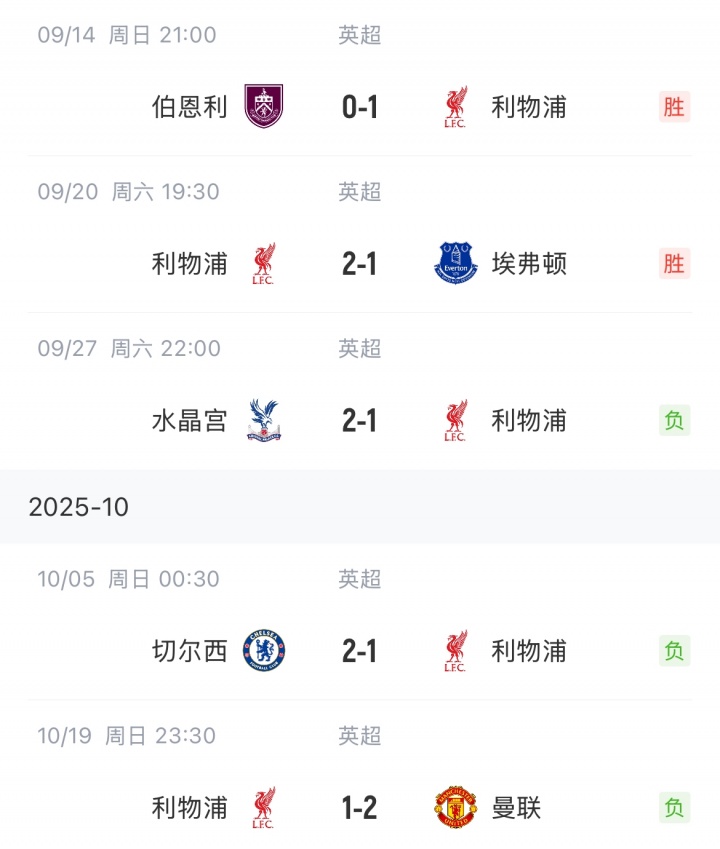 利物浦第五轮时一度跳跃阿森纳5分,随后先后不敌水晶宫、切尔西和曼联,联赛排行掉至第四过期榜首4分。